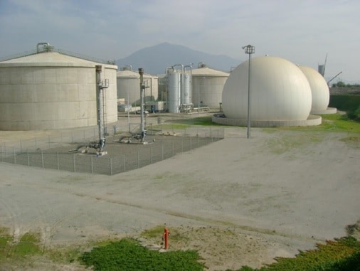 A segunda parada do “biodigestores ao redor do mundo” é a América do Sul. Aqui uns dos projetos mais interessantes observados está instalado em Santiago, capital do Chile. Lá a empresa La Farfana, a maior estação privada de tratamento de efluentes do Chile, responsável por tratar 60% do esgoto gerado em Santiago ou o equivalente a 778 mil m³/dia gera em torno de 60 mil m³ de biogás por dia. No início o biogás costumava ser utilizado como fonte de calor no aquecimento de caldeiras de água, que serviam ao abastecimento de processos da própria ETE. Porém, a forte dependência do gás natural importado da Argentina, com abastecimento incerto e preços elevados motivou a construção de uma central para captação e purificação do biogás da estação, com o objetivo de transformá-lo em gás natural e comercializá-lo. O gás natural possui 70% teor de metano, enquanto que no biogás este teor é de aproximadamente 55%; portanto, para converter o biogás em gás natural é necessário remover suas impurezas, “liberando espaço” para novas moléculas de metano.